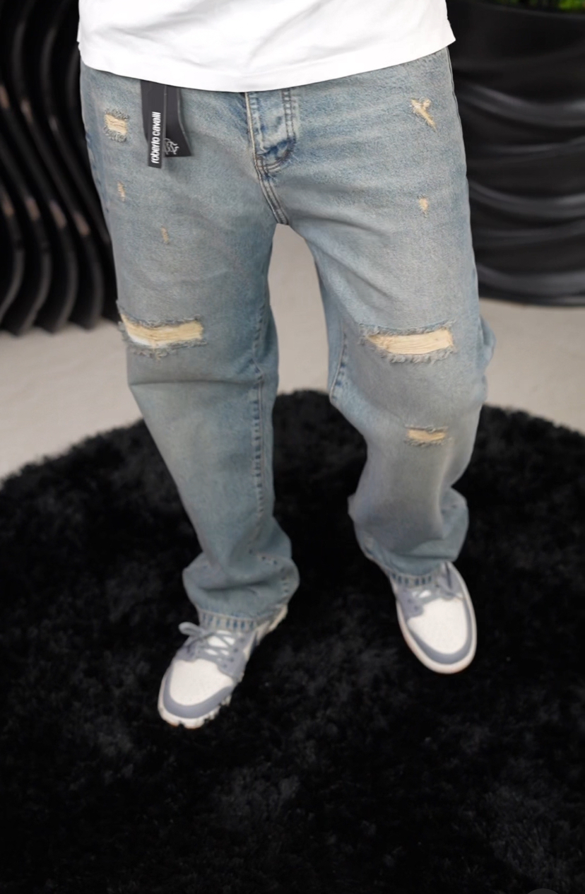 شلوار جین بگ مردانه آبی